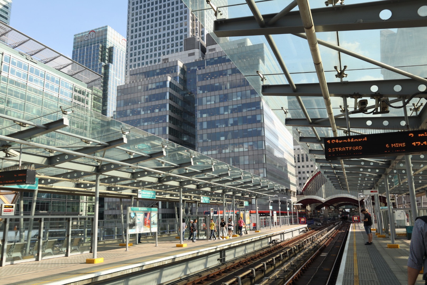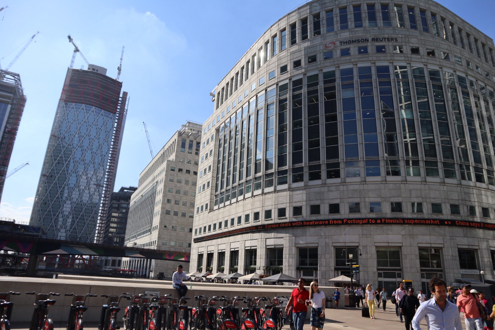 The place to be to enjoy the dynamic Canary Wharf. There is even an electronic Info board!