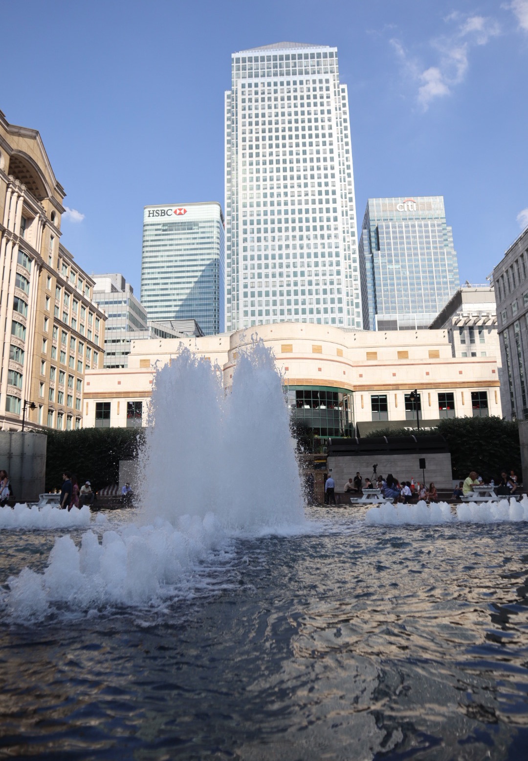 A very photogenic fountain located at the entrance to Canary Wharf